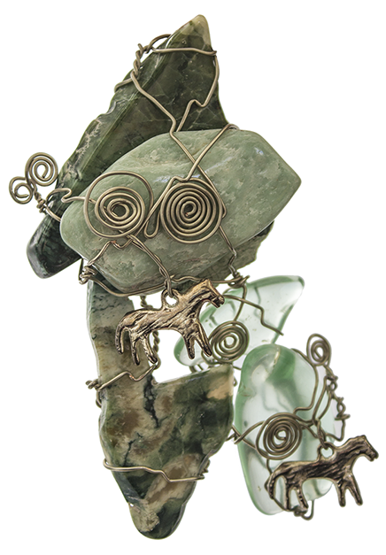 THE GIFT, tumbled rock, brass wire, 2012