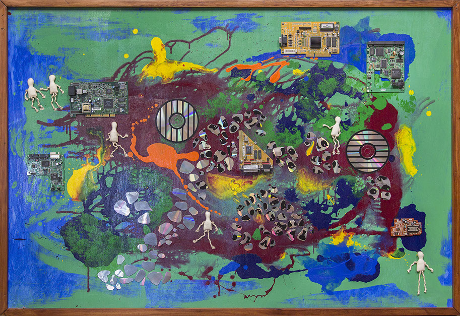 LANDSCAPE ONE, tumbled rock, copper wire, and found objects, 2016